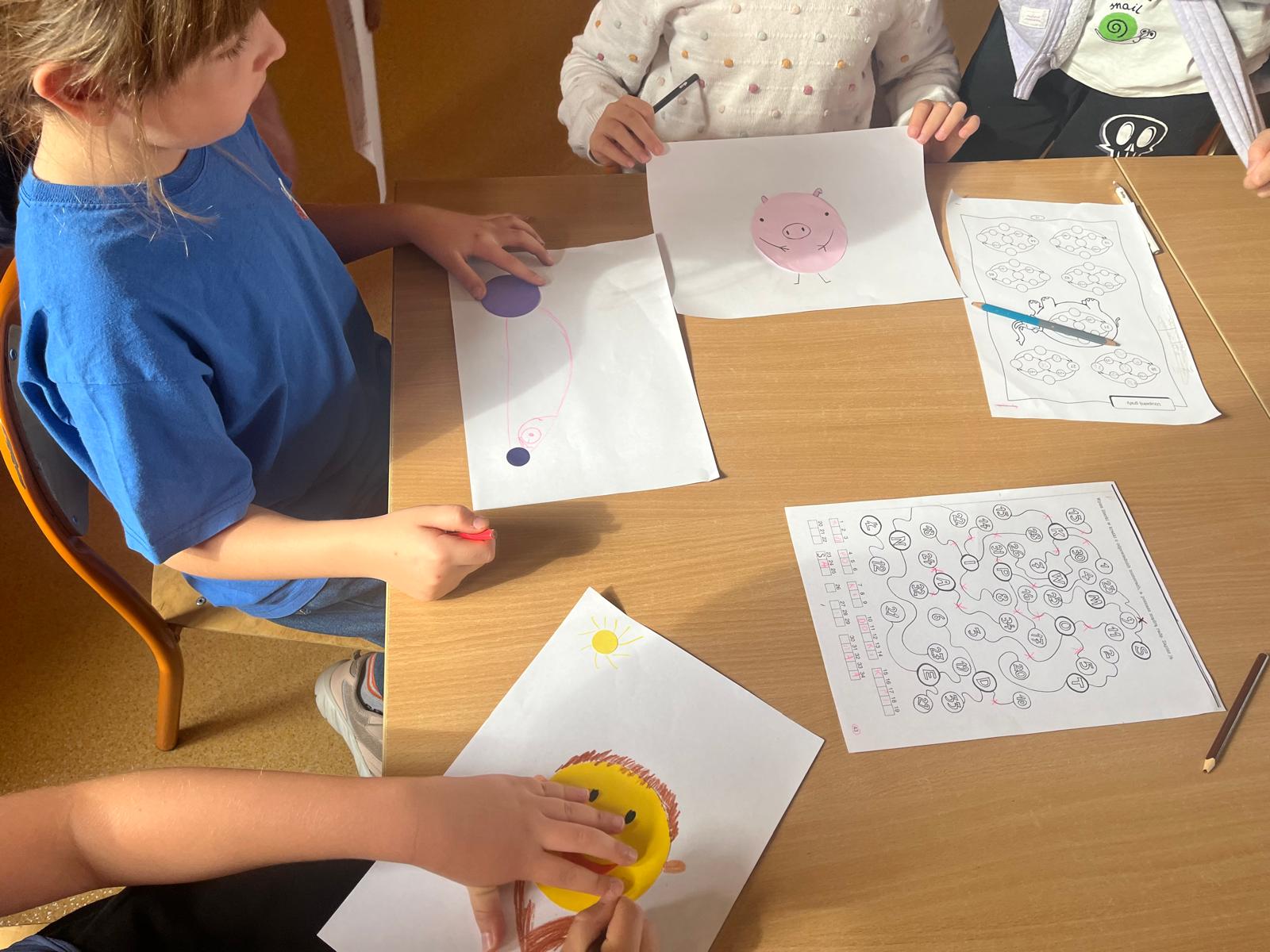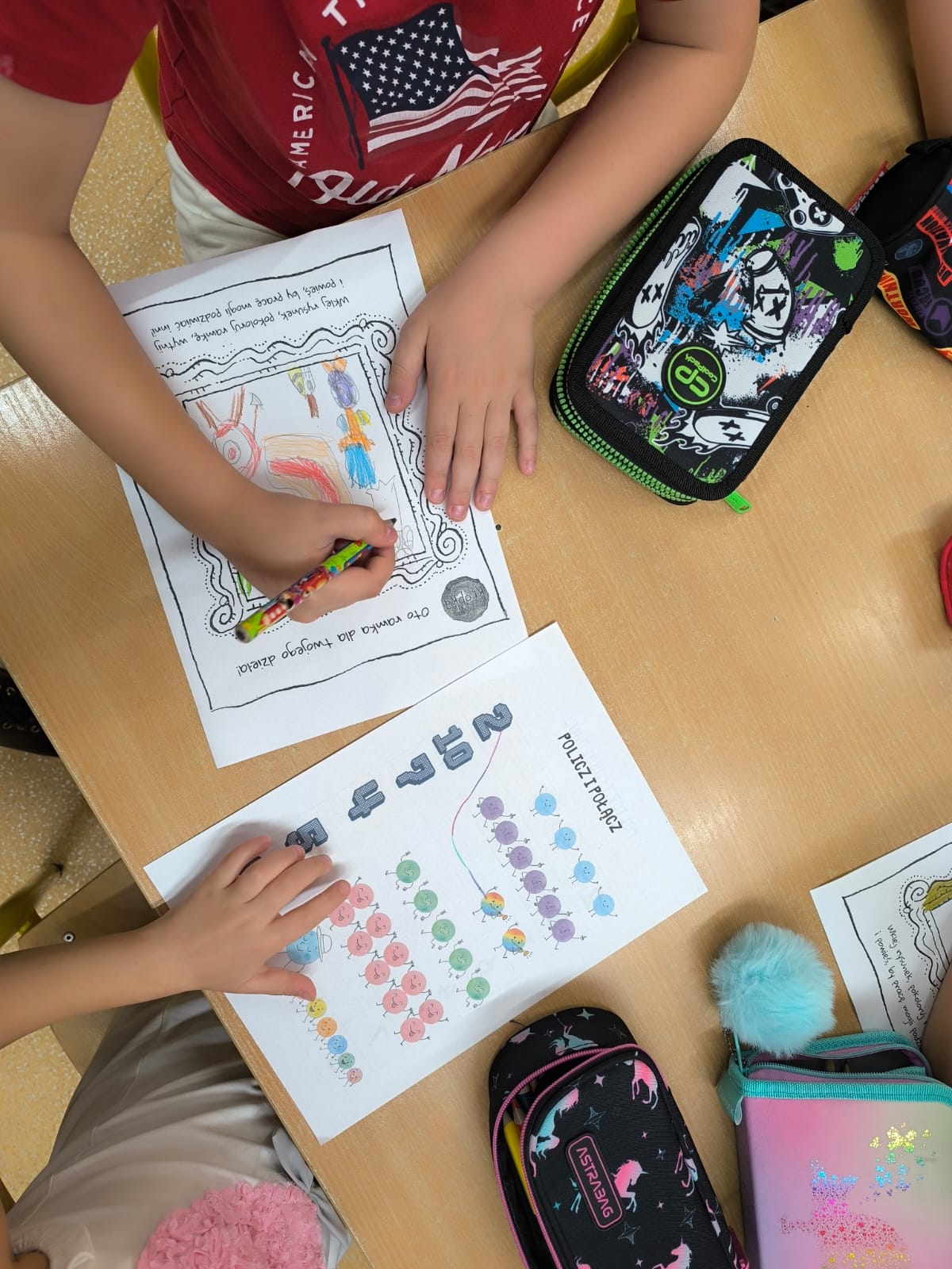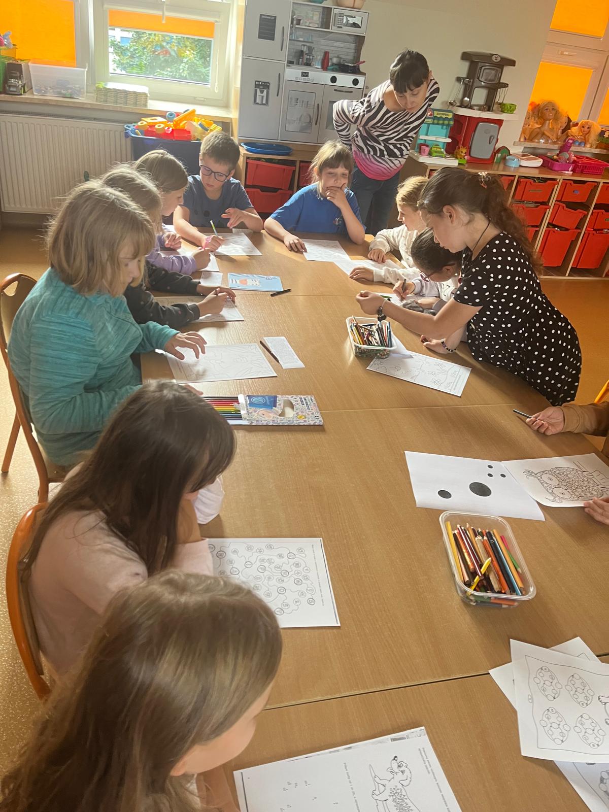 W naszej świetlicy uczniowie od samego rana brali udział w różnego typu zabawach, grach i aktywnościach. Wypełniano karty pracy, kolorowanki, szarady związane z kropkowym świętem. Mogliśmy wysłuchać piosenek i wierszy o kropce, a także obejrzeć film o małej Vashti, bohaterce książki P. H. Reynoldsa, od której miało początek to święto.