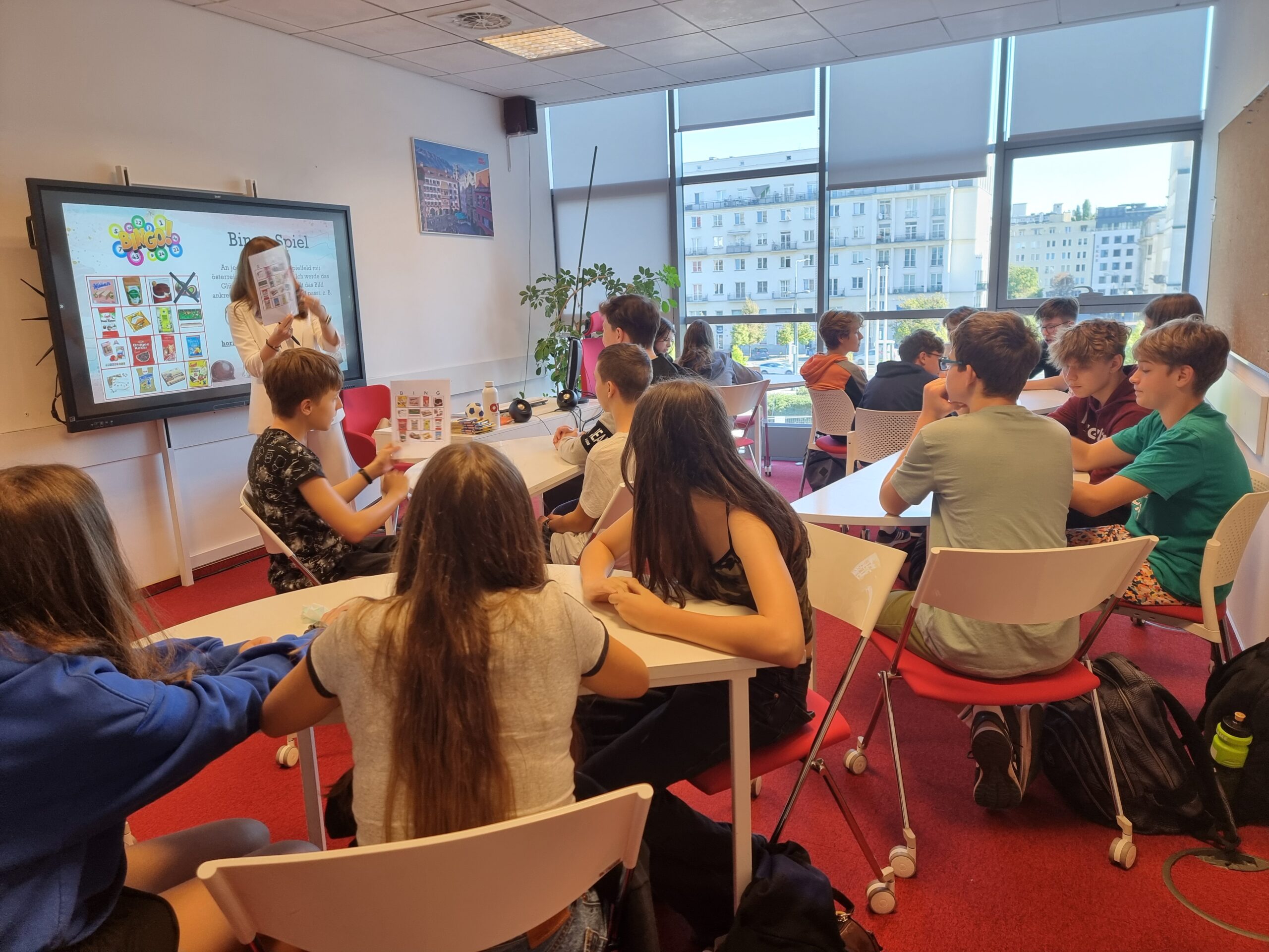 Z tej okazji uczniowie klasy 8d wzięli udział w warsztatach językowych w Instytucie Austriackim. Mieli okazję rozmawiać z native speakerami, poznać austriacką odmianę Hochdeutsch i pysznie się bawić, ponieważ tematem przewodnim było jedzenie w Austrii.