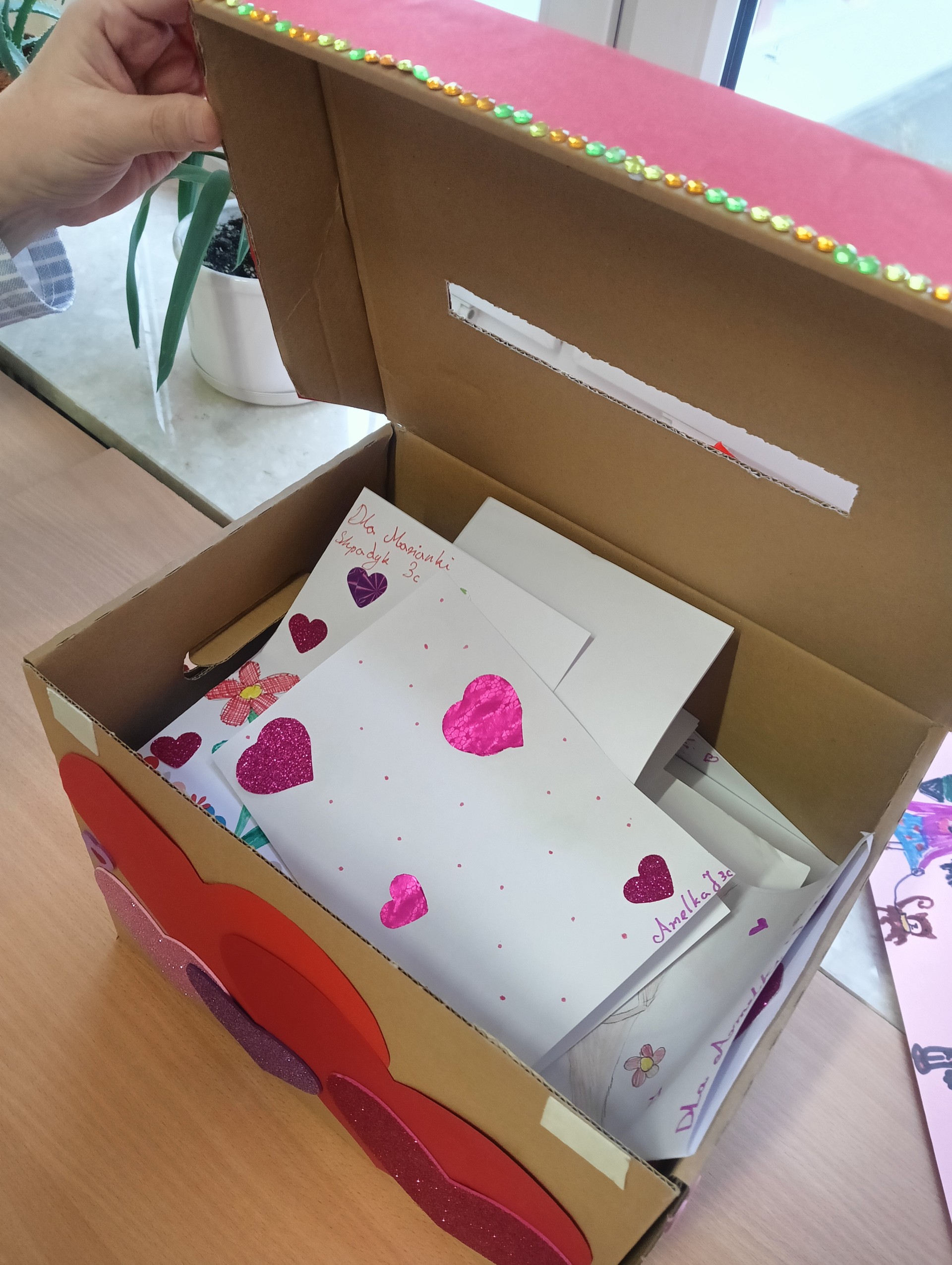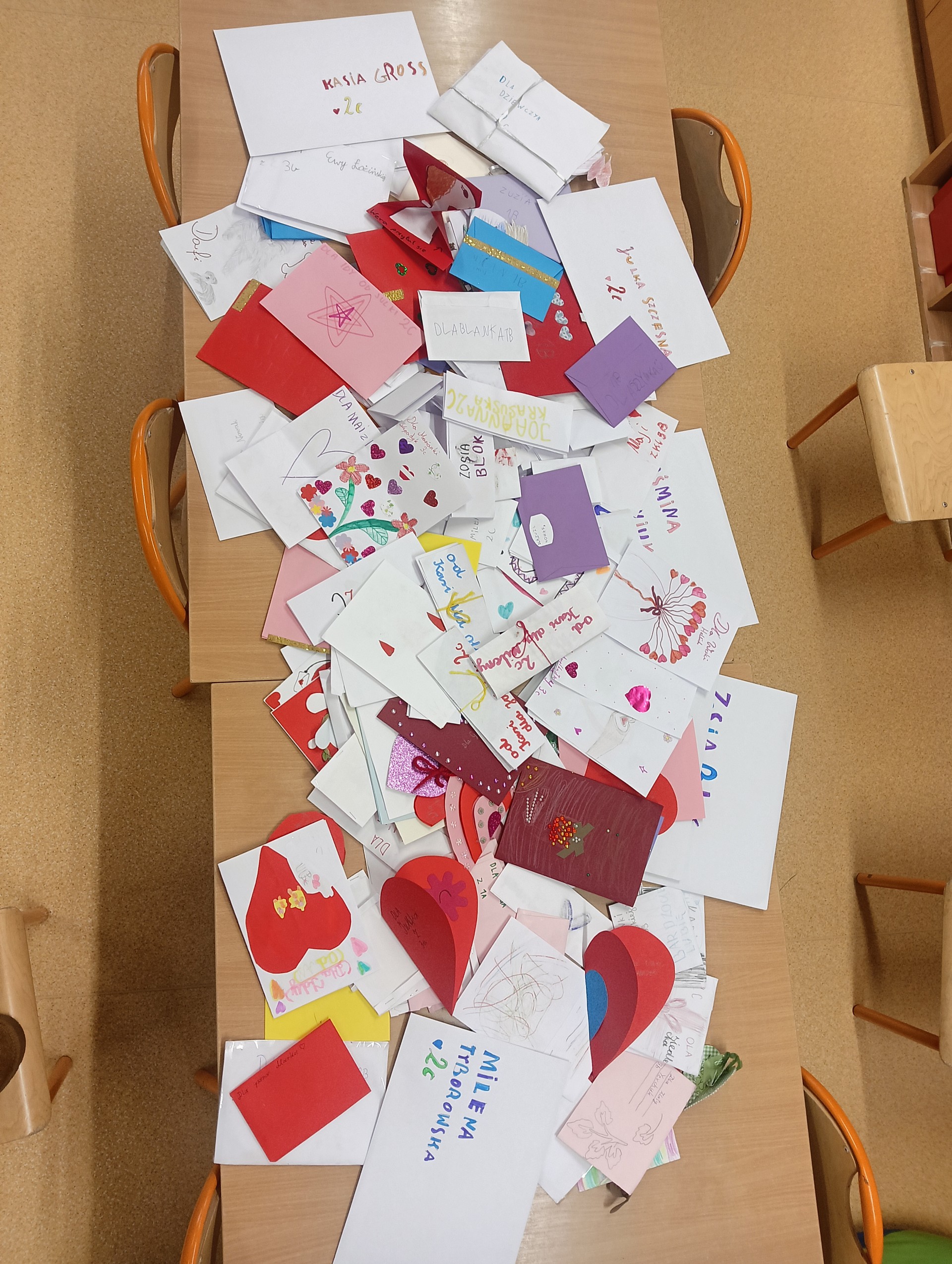 W naszej świetlicy w dniach 9-13 lutego została zorganizowana Poczta Walentynkowa. Każdy z uczniów klas I-III mógł wrzucić do skrzynki pocztowej własnoręcznie wykonaną kartkę walentynkową dla osoby, którą bardzo lubi, z którą najczęściej spędza czas, która się podoba, której jesteśmy za coś wdzięczni, chcemy podziękować itp. Wpłynęło 130 kartek, z których wybraliśmy kilka najbardziej oryginalnych i nagrodziliśmy drobnymi walentynkowymi upominkami. Pamiętajmy, że Walentynki możemy obchodzić nie tylko 14 lutego, ale każdego dnia i bez żadnej okazji sprawić najbliższym miłą niespodziankę i napisać kilka miłych słów lub coś narysować, co wywoła uśmiech na twarzy kolegi czy koleżanki.