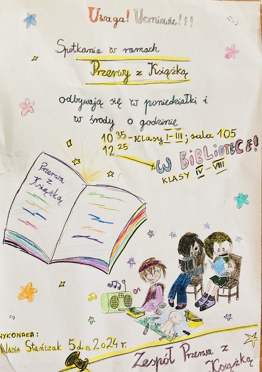 W naszej Szkole organizowane są systematyczne spotkania z książką w ramach realizowanej innowacji pedagogicznej „Przerwa z Książką”.