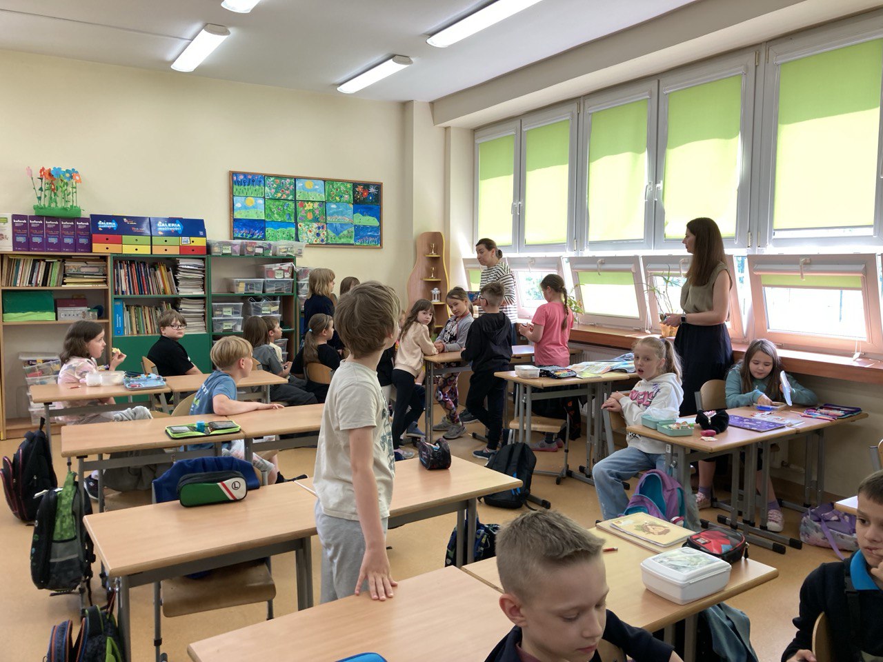 Podczas ustalonych przerw uczniowie klas I-III słuchają fragmentów ulubionych książek czytanych przez nauczycieli, specjalistów oraz uczniów klas starszych.