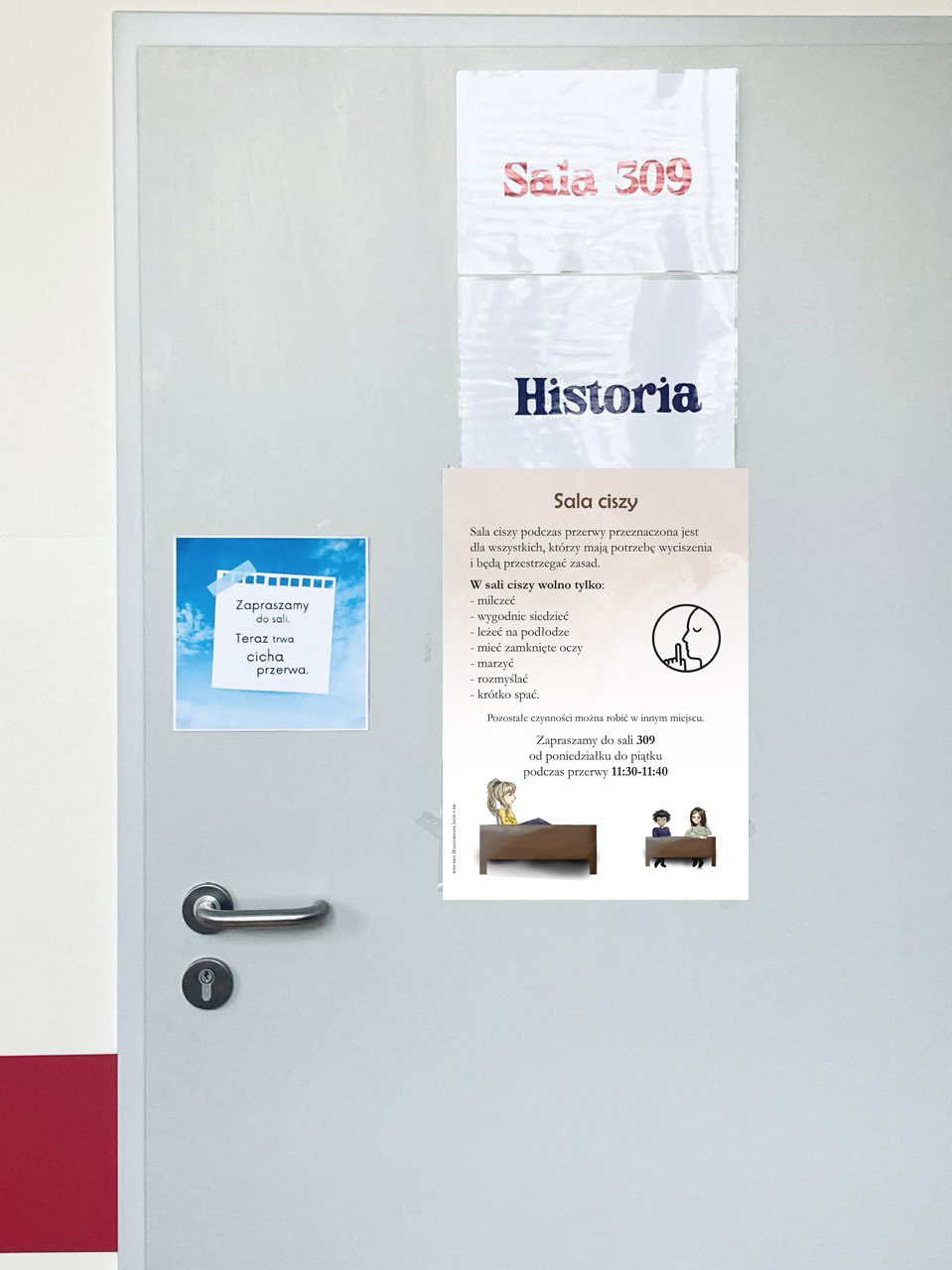 W naszej szkole stworzyliśmy salę ciszy, gdzie można odpocząć w spokoju, kiedy uczniowie odczuwają zmęczenie hałasem podczas przerw.