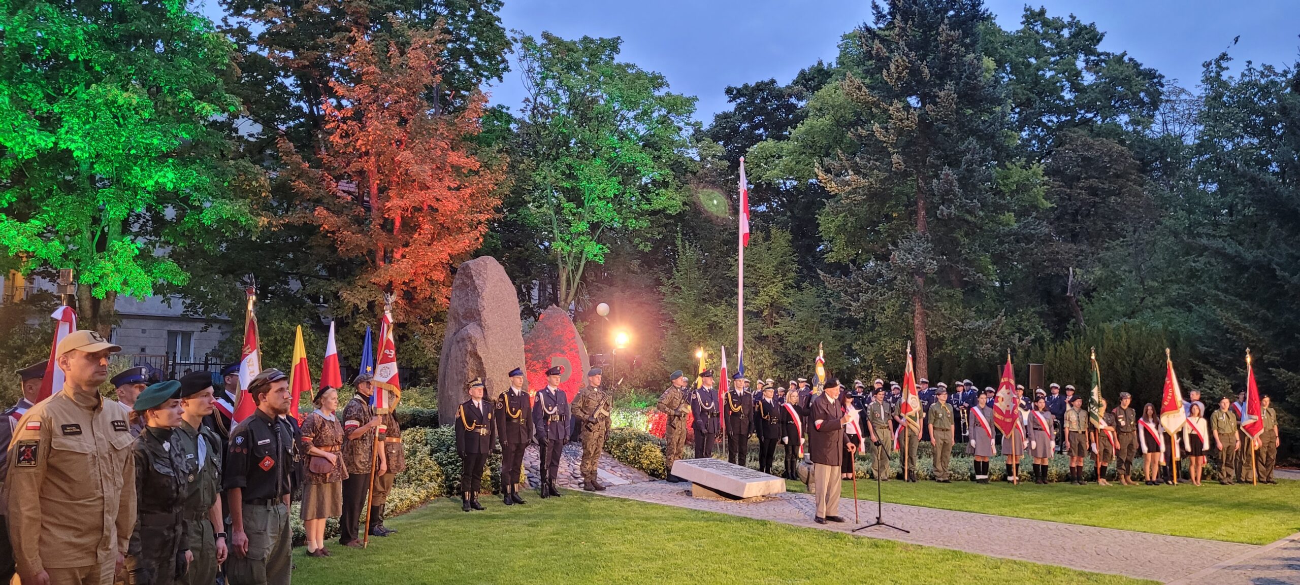 Udział Pocztu Sztandarowego w uroczystości zakończenia obchodów 79. rocznicy Powstania Warszawskiego 2 października 2023 r. o godz. 18, pod pomnikiem Mokotów Walczący 1944 w parku gen. Gustawa Orlicz-Dreszera. Nastąpiło opuszczenie flagi państwowej, przeniesienie Ognia pamięci do Grobu Nieznanego Żołnierza, a także wyłączenie iluminacji pomnika Mokotów Walczący 1944. Wraz z uczniami byli: Dyrektor Szkoły – Elżbieta Rutkowska, nauczyciel – Bartosz Sałaj. Pani Dyrektor w imieniu społeczności szkolnej złożyła przy pomniku wieniec.